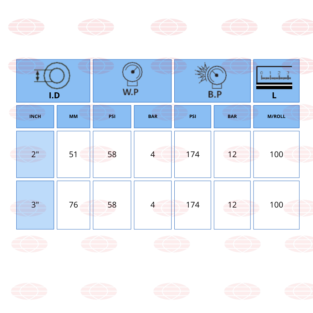 Construcción: Tubo y cubierta: PVC, azul, . Refuerzo: trenzado de poliéster de alta resistencia