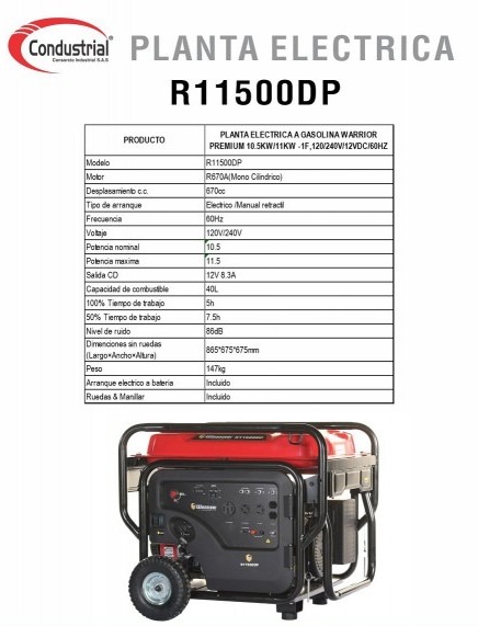PLANTA ELECTRICA A GASOLINA WARRIOR PREMIUM 10.5KW/11KW -1F,120/240V/12VDC/60HZ